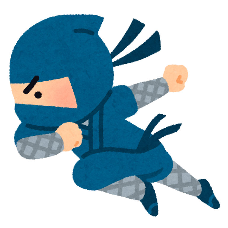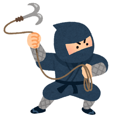 それでは任務中はというと、まず身の軽さです。高いところによじ登ったり飛び降りたり、敵の攻撃に素早く身をひるがえしたり音もなく超スピードで走ったりするのに身体が重くてはできません。たとえ何日にも及ぶ活動であっても軽装必須なため、せいぜい少量の食糧と敵から身を守る最低限の武器しか携帯できなかったでしょう。肉体を駆使するためには相当のカロリーが必要ですが任務中はどうやって摂取していたのでしょう。
