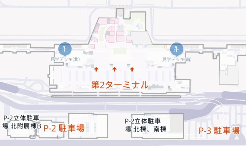 第2ターミナル「見学デッキ」は4階に2ヵ所ございます。駐機している飛行機を間近にご覧頂けます。飛行機をゆっくりと眺めることができます。