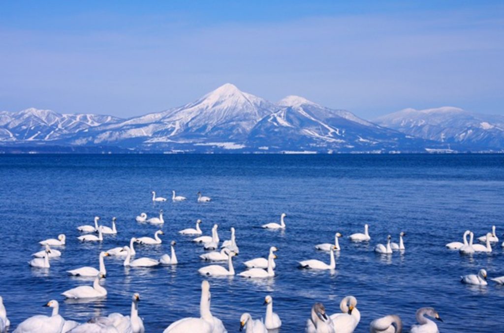 福島県の中央にあり、猪苗代町と会津若松市、郡山市の3つにあります。面積は103㎢、深度は93mで日本では、4番目に大きい湖です。12月頃から集まり、2月頃にピークを迎える白鳥は、シベリアから3000羽ほどやってきます。白鳥は国の天然記念物にもなっています。