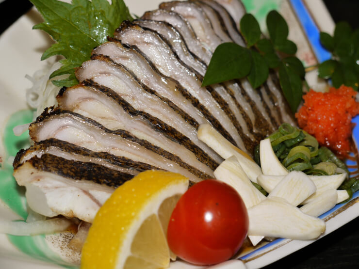 たたき料理が浸透している高知県では、うつぼのたたきも隠れたご当地グルメの一つ。あっさりとした肉質と皮下の濃厚な旨みがクセになるおいしさです。