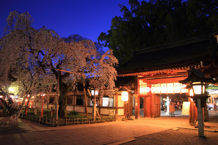 また、江戸時代(17世紀〜19世紀前半)に、夜桜が一般庶民に開放されて以来、「平野の夜桜」として地元の方や観光客にしたしまれているように、平野神社は夜桜が美しいことでも有名です。