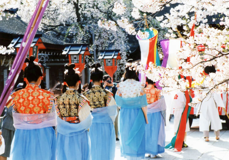 毎年4月10日には、平野神社において「桜花祭」という時代行列が見られます。