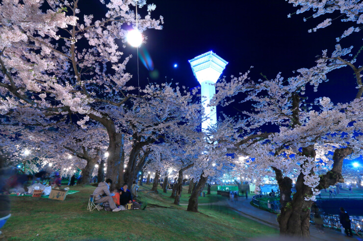 ライトアップ期間中は、散策路に提灯や照明が施される「五稜郭桜まつり」も開かれ、露店やイベントで盛り上がるので、桜を鑑賞しながら函館グルメを堪能するのもいいでしょう。