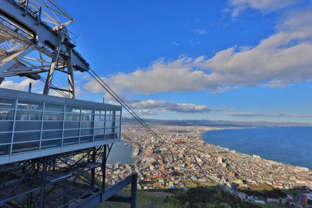 山頂の「展望台」は、雄大なパノラマや美しい夜景が楽しめるスポットとしても人気です。「函館山ロープウェイ」は景色を楽しみながら短時間で行けるのでオススメです。