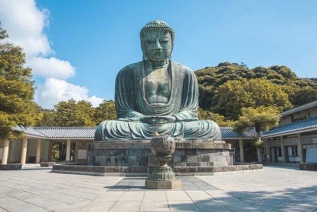 1243年初代の大仏は木像で金箔がつき、40メートルもあったそうです。台風により崩壊したため、現在の青銅製になり座る形になったそうです。約13.35メートル、総重量は約121トンもあり国宝になっています。存在感があり神秘的な雰囲気も感じさせる大仏様は、鎌倉のシンボルともなっています。胎内に入ることもできるので貴重な体験をしてみてください。