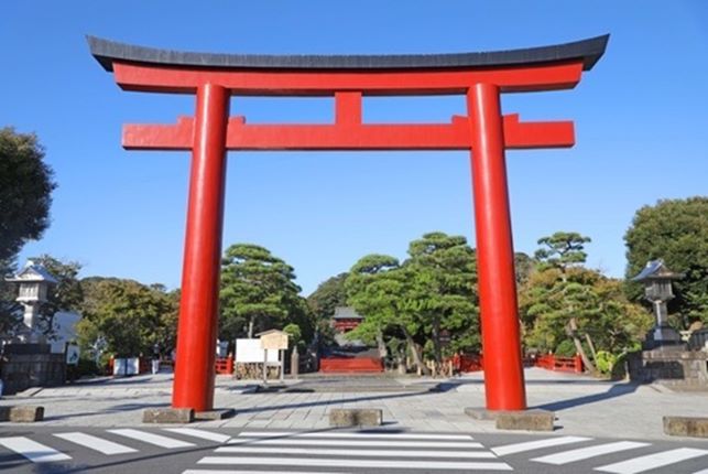 「鳥居」が三つあり大きいのが特徴です。海に近いところにある「一ノ鳥居」JR鎌倉駅東口を出て3分のところにある「二ノ鳥居」鶴岡八幡宮の参道の先にある「三の鳥居」です。