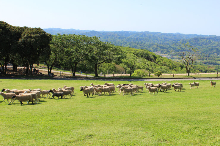 千葉県・鹿野山に広がる「マザー牧場」は、東京湾や富士山を望む絶景の中で動物と触れ合える人気スポット。羊、牛、ヤギ、アルパカ、カピバラなど多彩な動物が暮らし、「ひつじの大行進」や乳しぼり体験、こぶたのレースなど楽しいイベントが毎日開催されています。