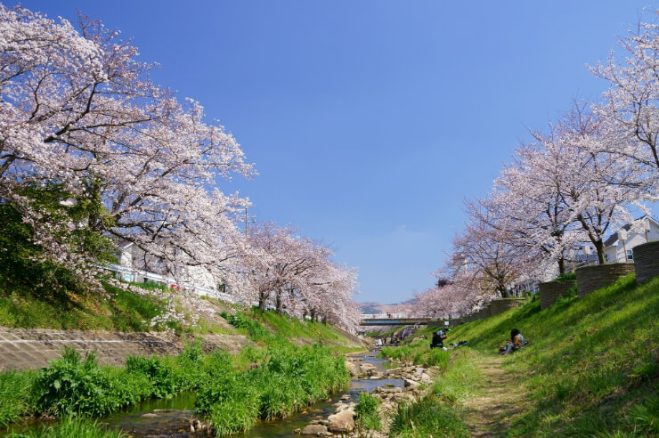 奈良市を流れる佐保川は、万葉集にも詠まれた歴史ある川。その両岸には約5kmにわたり桜並木が続き、満開時には川面を淡いピンクに染め上げます。江戸時代末期の奈良奉行・川路聖謨が植えたとされる「川路桜」は、樹齢170年の老木も残り、地元の人々に大切に守られています。