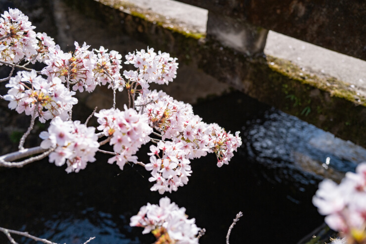 當櫻花盛開在延伸至水面的枝頭時,便會出現一條美麗的隧道狀道路,許多人都會一邊仰望櫻花,一邊欣賞櫻花。